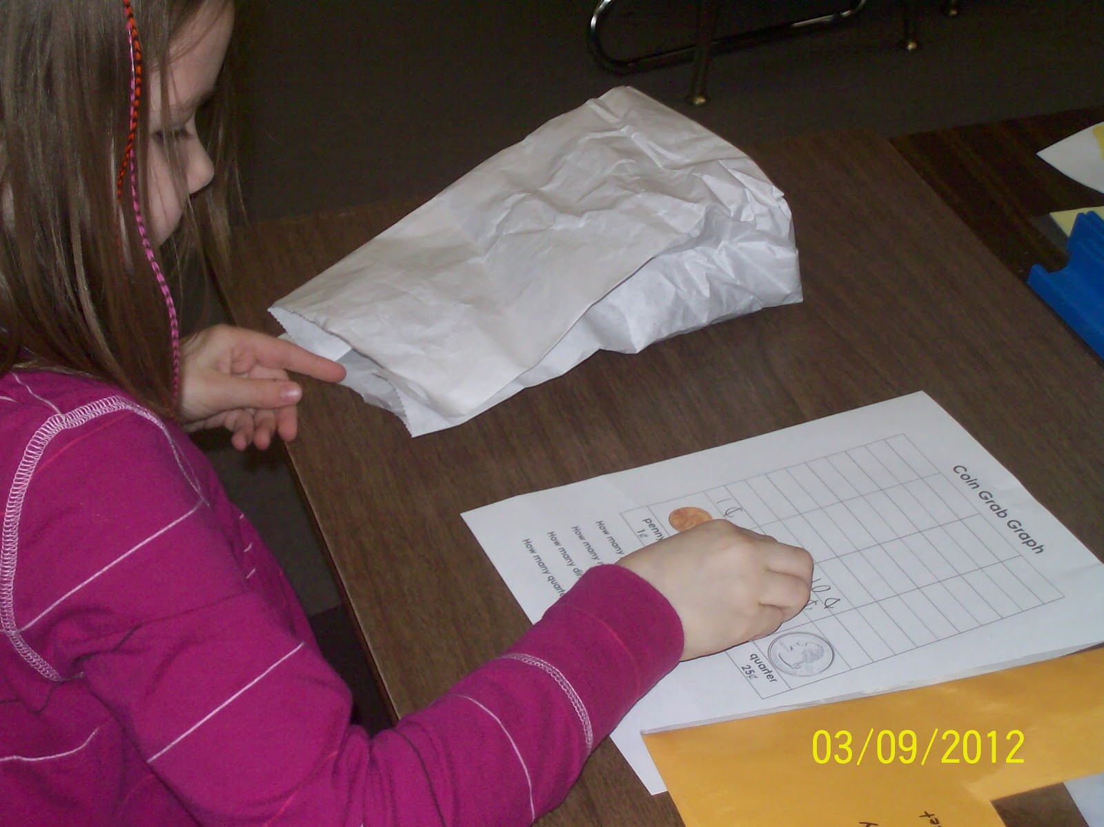 What's that coin? Boys and girls take a coin from the bag. They match the coin and record the value on their recording sheet.